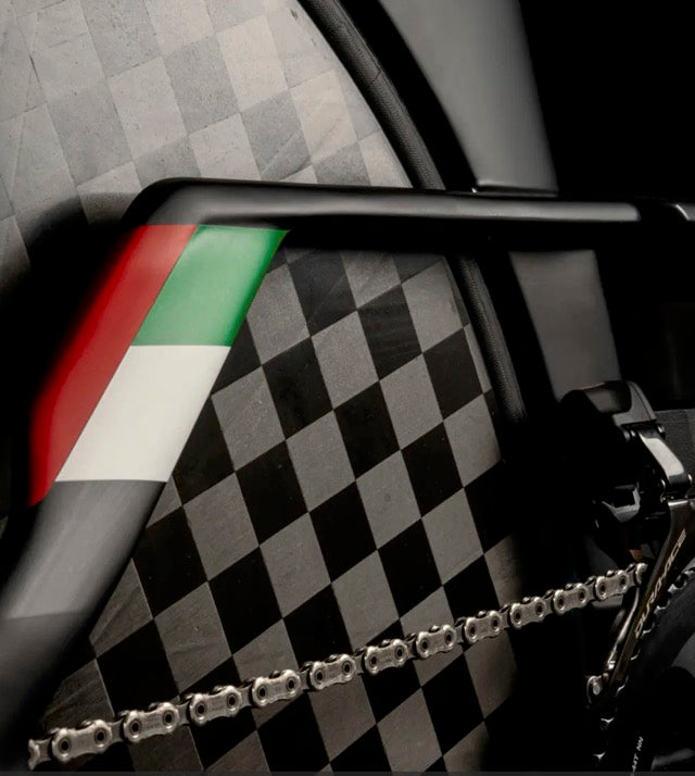 The TT1 is the first Colnago time trial bike with a disc brake system. This choice ensures better integration of the hydraulic tubes within the frame with improved braking performance and greater rigidity of the entire bicycle due to the use of through axles on the wheels. The weight difference compared to the previous Colnago TT model, the K.-One, is minimal, while offering better braking performance and safety.